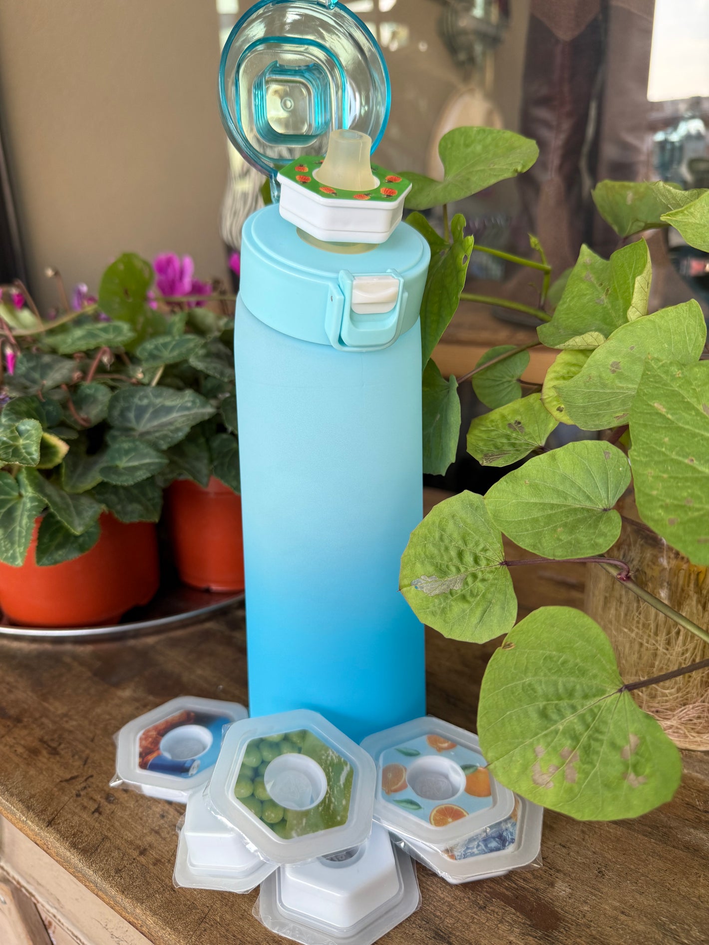 בקבוק מים חדשני עם קפסולות ריח ייחודיות שמתחברות אל הפייה.